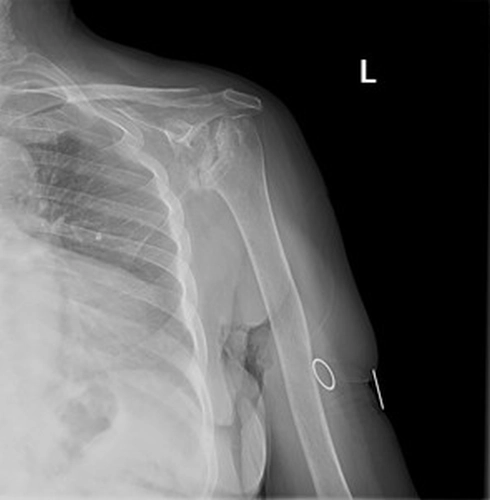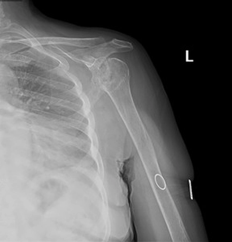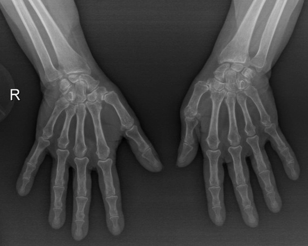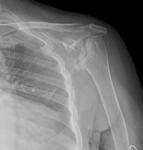 Hikaye:Bilinen travma öyküsü olmayan hastanın 2020’den beri progresif artan sol omuzda hareket kısıtlılığı mevcut. Dış merkezde ortopediye başvuran hasta artroplasti önerilmiş fakat başta materyal olmaması sebebiyle uzun süre opere edilmemiş ve sonrasında operasyona çağırıldığında ağrı azalmış, diş tedavisi görmekteymiş ve aktif enfeksiyon mevcut olduğu için opere edilememiş.